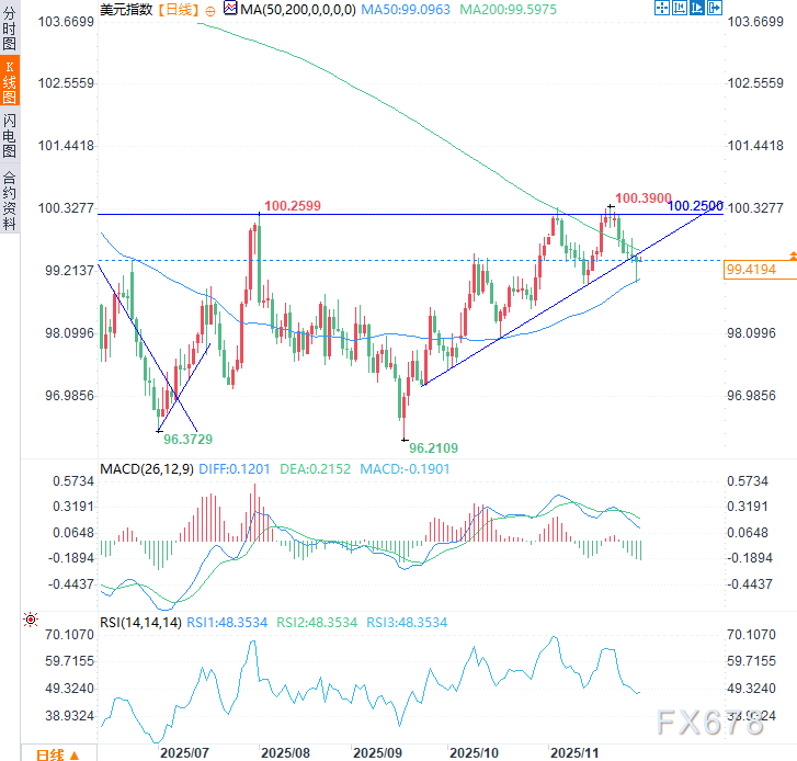汇通财经APP讯——周二(12月2日)亚市时段,美元指数于99.43附近窄幅震荡,暂时止住前五个交易日跌势。美元技术面正显现出短期走强的迹象,价格信号指向上行,尽管宏观背景并不支持这一点。周一公布的ISM制造业PMI强化了美国数据的疲软基调,显示新订单和就业分项指标收缩加剧。