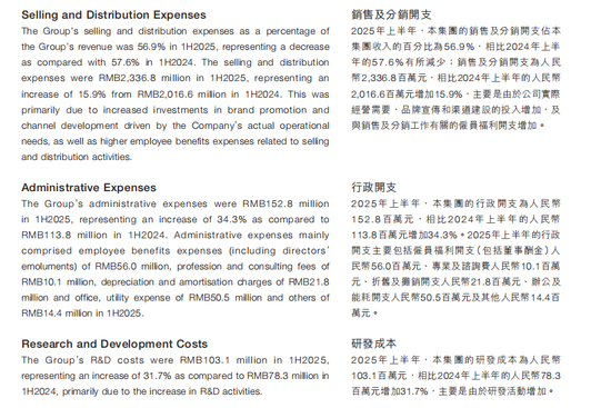从上美股份2025中期报告相关数据来看,上美股份的增长仍建立在高投入的费用形态之上。其2025中期报告显示,2025年上半年实现收入为人民币41.08亿元;销售及分销开支为人民币23.37亿元,占收入比例为56.9%;研发开支为人民币1.03亿元,占其收入的2.5%。