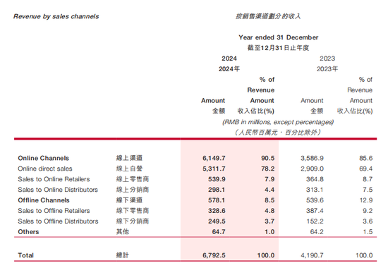 回溯其2024年渠道占比情况,其线上占比也处于高位,但线上自营占比低于2025年上半年。上美股份2024年度报告显示,其2024年线上渠道收入占比90.5%;其中线上自营收入占比78.2%;线上零售商收入占比7.9%;线上分销商收入占比4.4%;线下渠道收入占比8.5%。