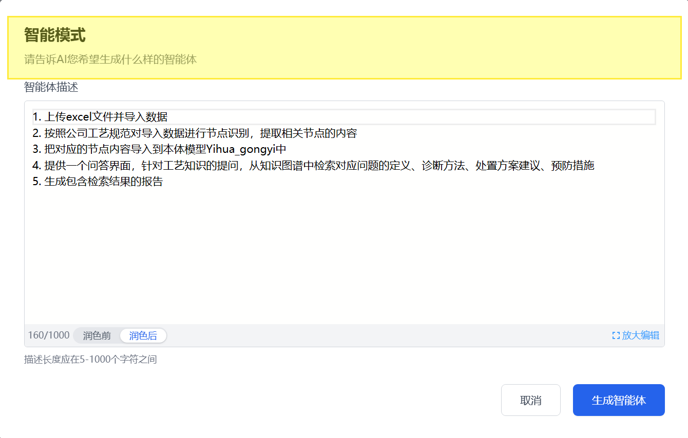 o 用户赋能: 用户可以轻松定义智能体的执行步骤。例如,定义一个“故障排查智能体”:第一步,读取报警代码;第二步,调用知识库匹配原因;第三步,调用库存系统查询备件;第四步,生成工单并发送邮件。
