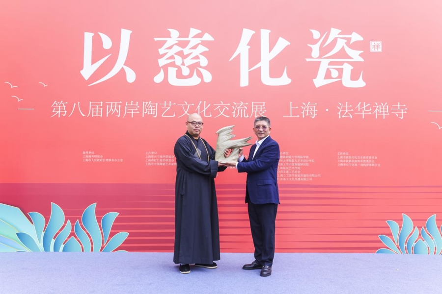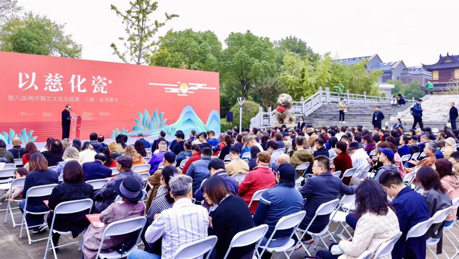 11月8日,第八届“以慈化瓷——两岸陶艺文化交流展”开幕式在上海中新泾公园・法华禅寺举办。来自海峡两岸的两百余位嘉宾齐聚一堂,共同见证这场以陶瓷为纽带的文化盛宴。